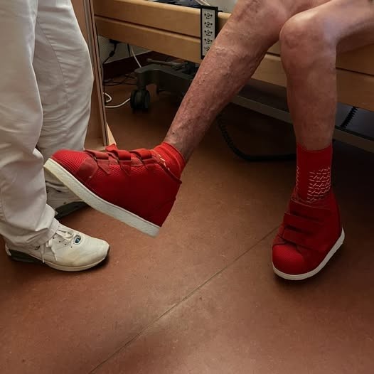 So trainierte er ab da mit dem Physiotherapeuten ganz motiviert das Aufsetzen, an die Bettkante setzen und nun das Stehen.