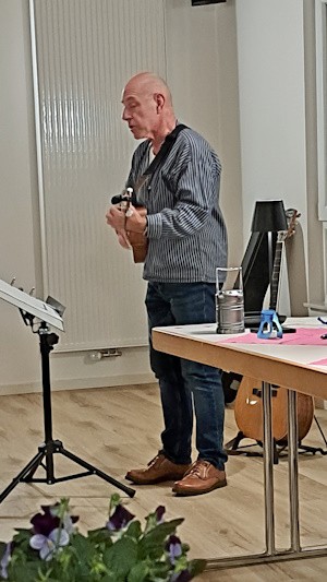 Heinz Maaßen erzählte die Geschichten in echter Malocher Manier und spielte auf seiner Gitarre selbstkomponierte Musikstücke. Das Publikum beteiligte sich trotz diverser Lachanfälle begeistert.