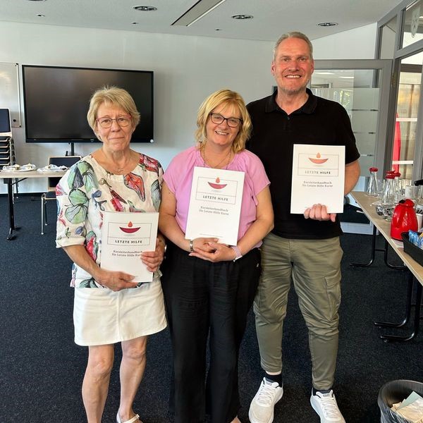 2 Koordinatorinnen und eine ehrenamtliche Hospizbegleiterin dürfen nun Letzte Hilfe Kurse für Kids und Teens abzuhalten. Unsere Empfehlung: unbedingt teilnehmen.